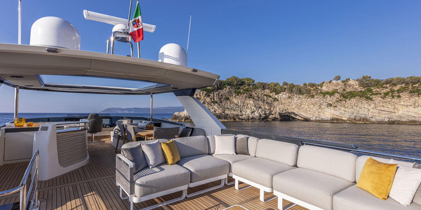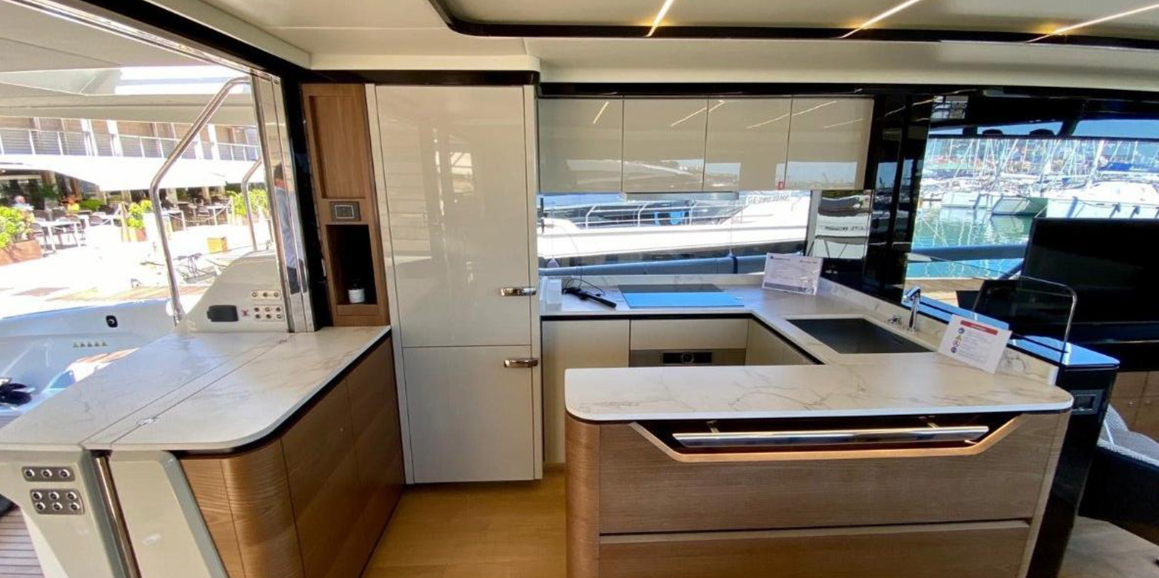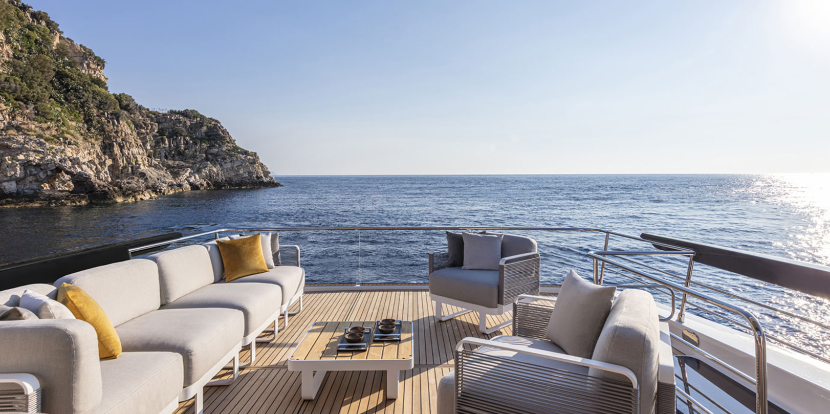 Aboard the Navetta 64, all the spaces are designed to offer the maximum enjoyment of the rooms—always panoramic and bright, thanks to unprecedented-size windows. In addition, the spaces are furnished and refined with everything you need to feel just like at home, without giving up on anything.