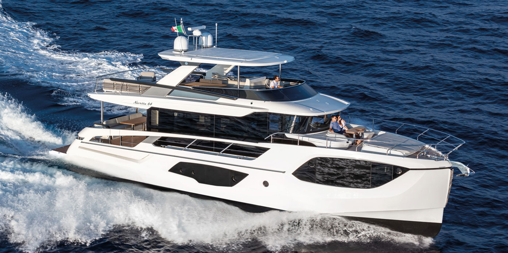 The Navetta 64, The Absolute Pathfinder, is like a sister to the other models in the range: she is a Navetta, and you can easily tell why. The wide and uninterrupted side glass window, which runs from the aft mirror to the windshield, outlines her exterior shapes, characterized by the significant enlargement of the bow windows and the opening of the side gunwales in the cockpit.