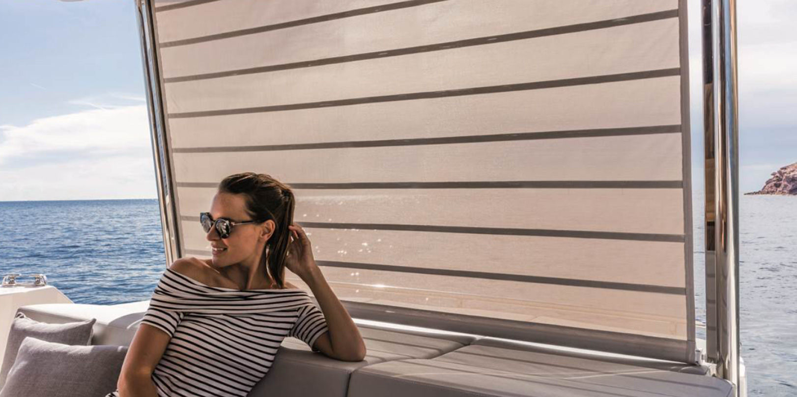 On the upper deck, an outdoor lounge that includes a table and a wet bar, can comfortably accommodate up to eight guests. Moreover, the technological and ergonomic helm station allows navigating surrounded by friends, always with everything under control.