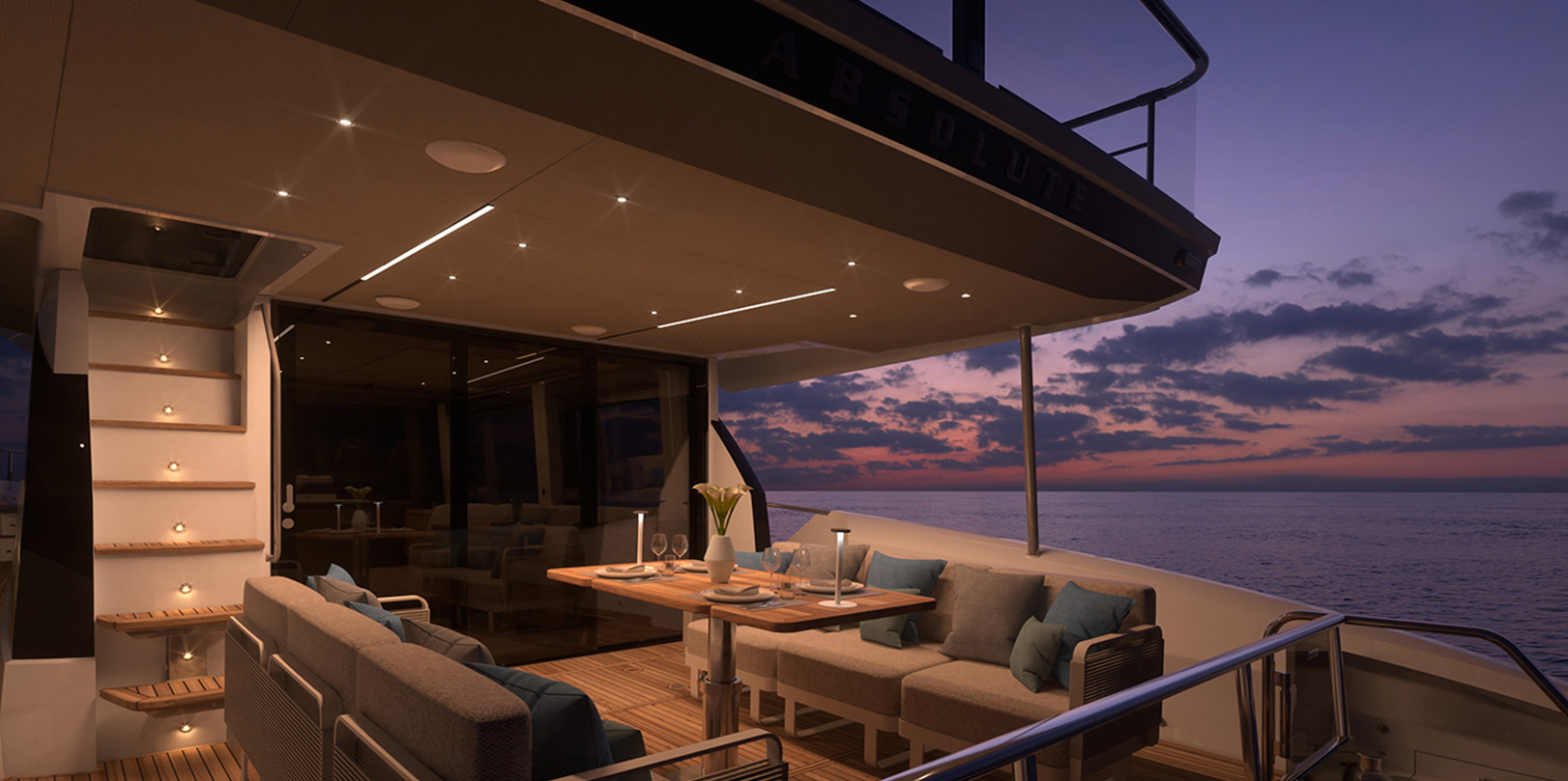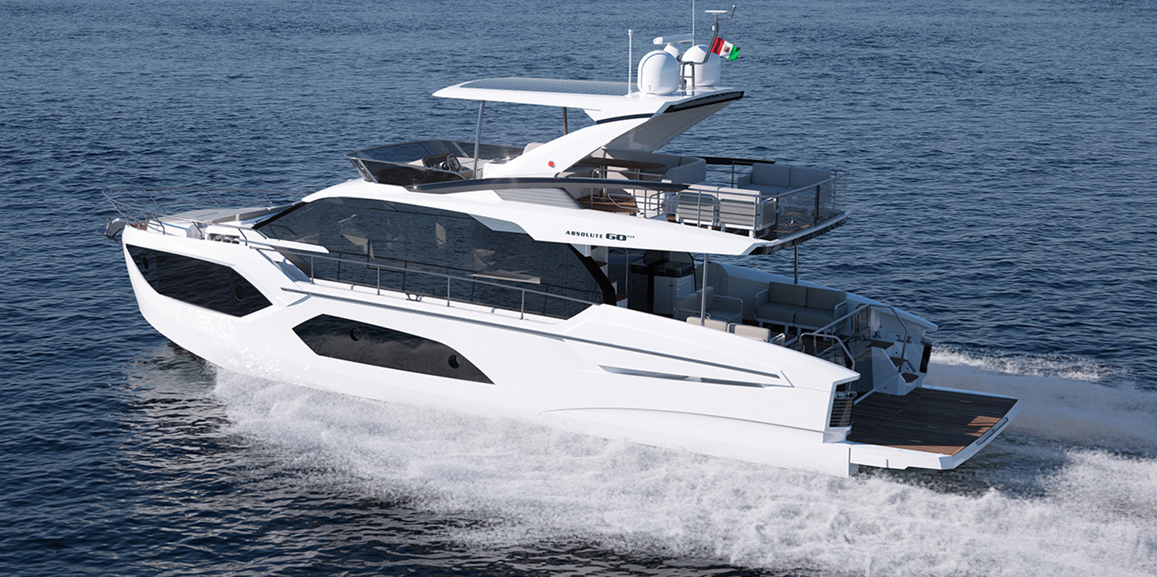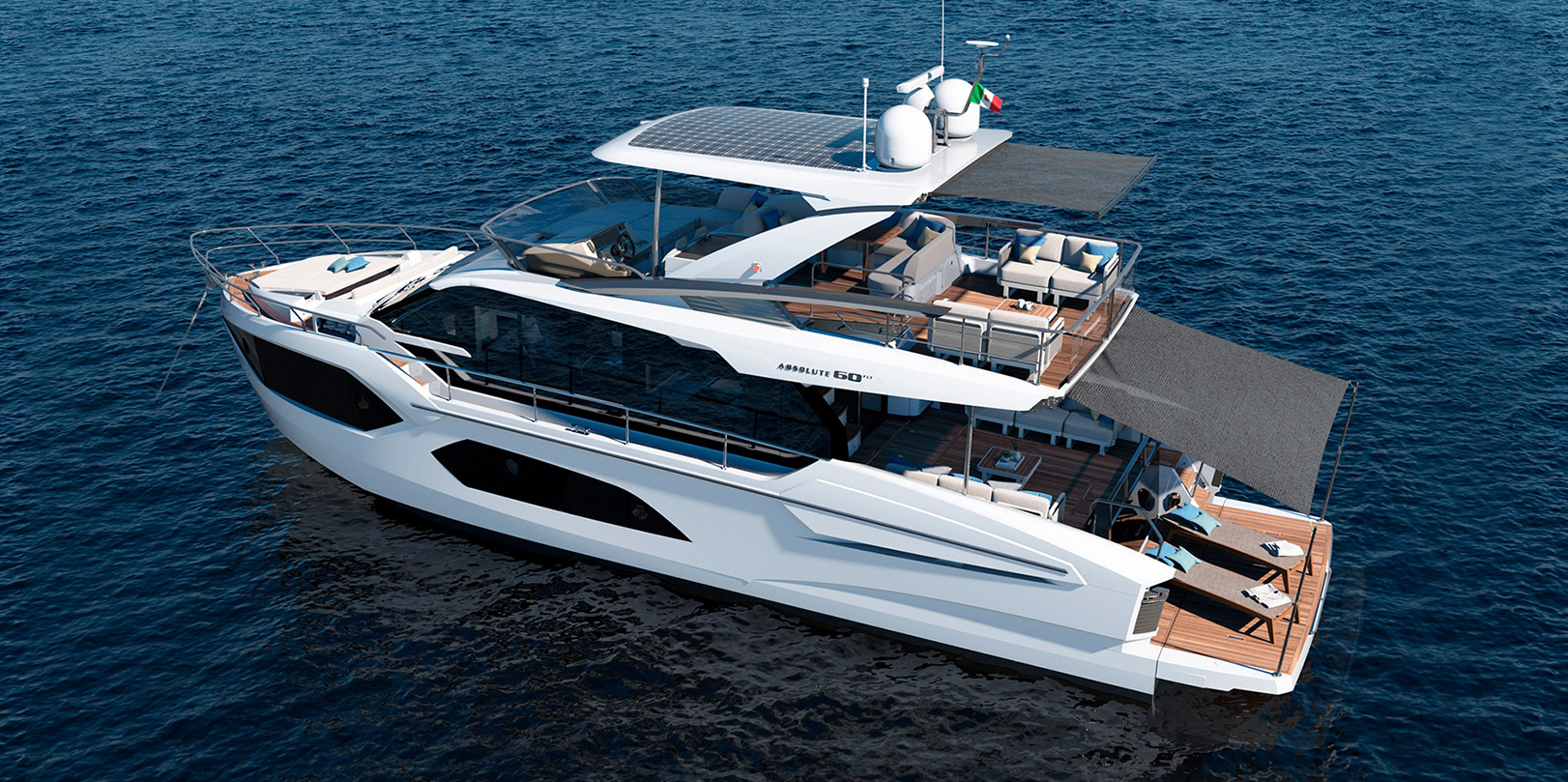 The interiors are designed with comfort in mind, furnished with elegance and embellished with the use of fine materials. Salon, galley and cockpit are adjacent and connected by a continuous design. The perceived sensation is of a large space without boundaries, enriched by modern lighting and entertainment systems, ergonomic air conditioning system and helm stations designed in detail, to be technologically advanced, comfortable and functional all at the same time. Absolute has always devoted particular attention to technological innovation, and the 60 FLY is proposed to the market with an equipment of the latest generation.