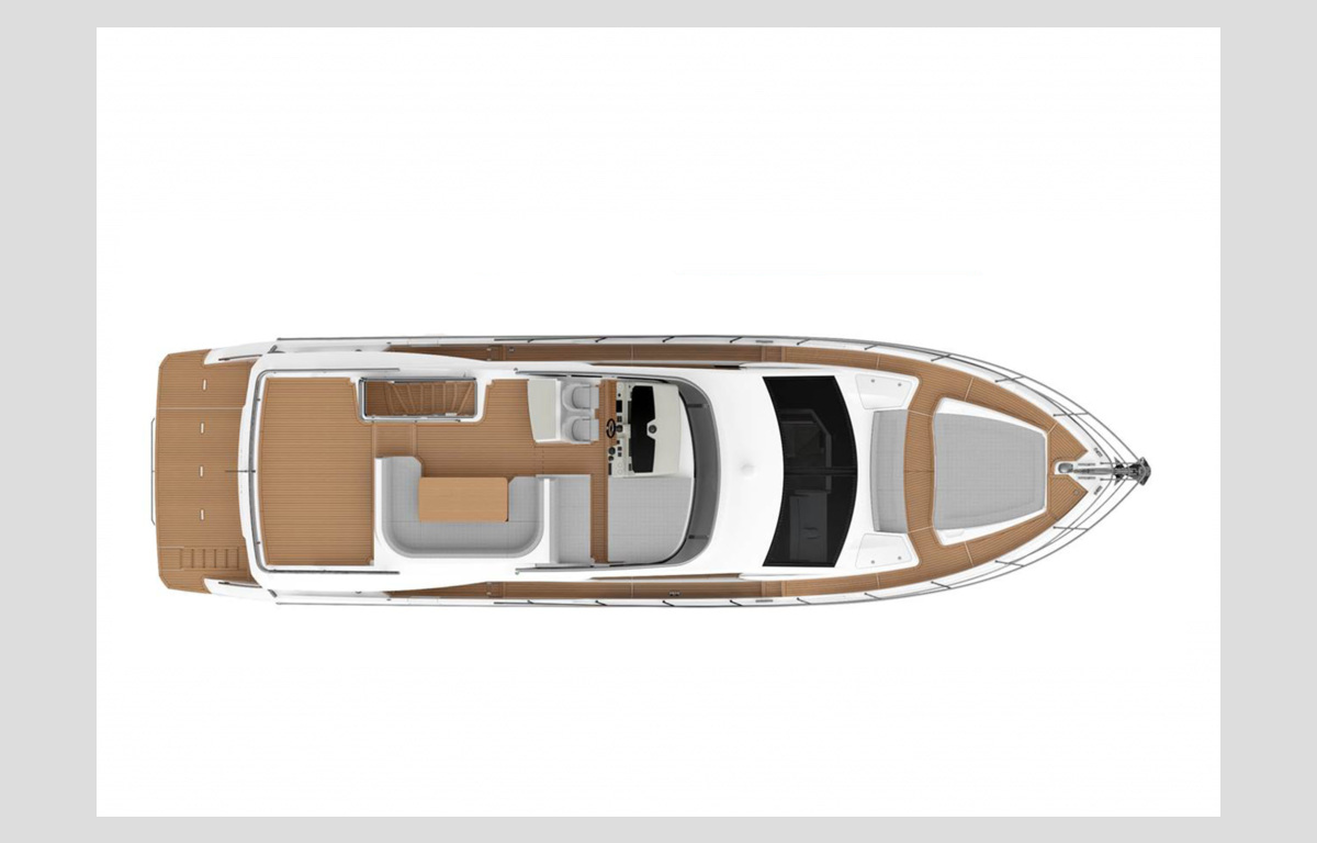 Outdoors, the high livability ensures full relaxation in each area. On the flybridge, there is a practical sun lounger next to the well-equipped double helm station, a table with a surrounding sofa, a cabinet with a fridge, a barbeque, a sink, an ice maker, and a terrace towards the stern that can be equipped with sunbeds.