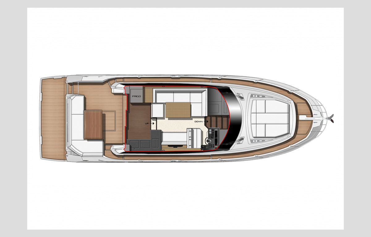 Onboard, everything has been optimized to offer unequaled space and comfort. Combining the design talents of Garroni Design and JP Concepts, this Flybridge meets all the latest requirements and boasts all the benefits of a true PRESTIGE Yacht.