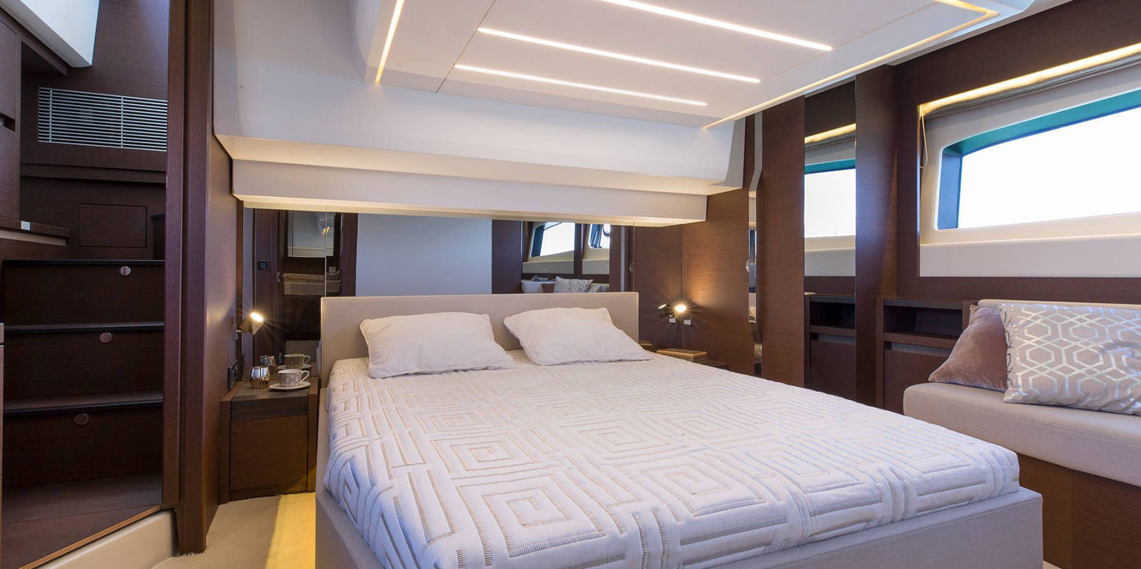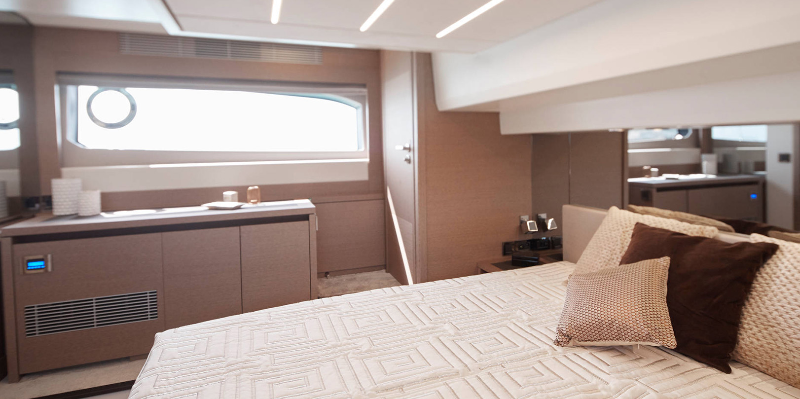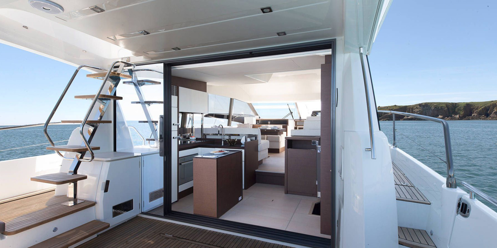 Life on board is easy, enhanced by numerous clever details. Conducive to relaxation, the L-shaped saloon includes an immense integrated storage locker. Intensely bright, the inviting saloon evokes a sense of well-being. Facing sofas and a modular cockpit bench seat, which can pivot to face the saloon, create the perfect space for entertaining.