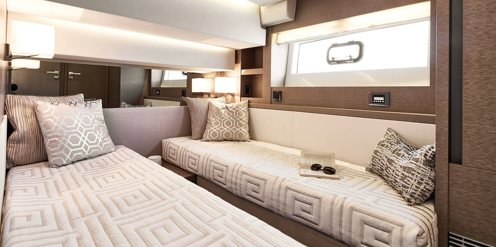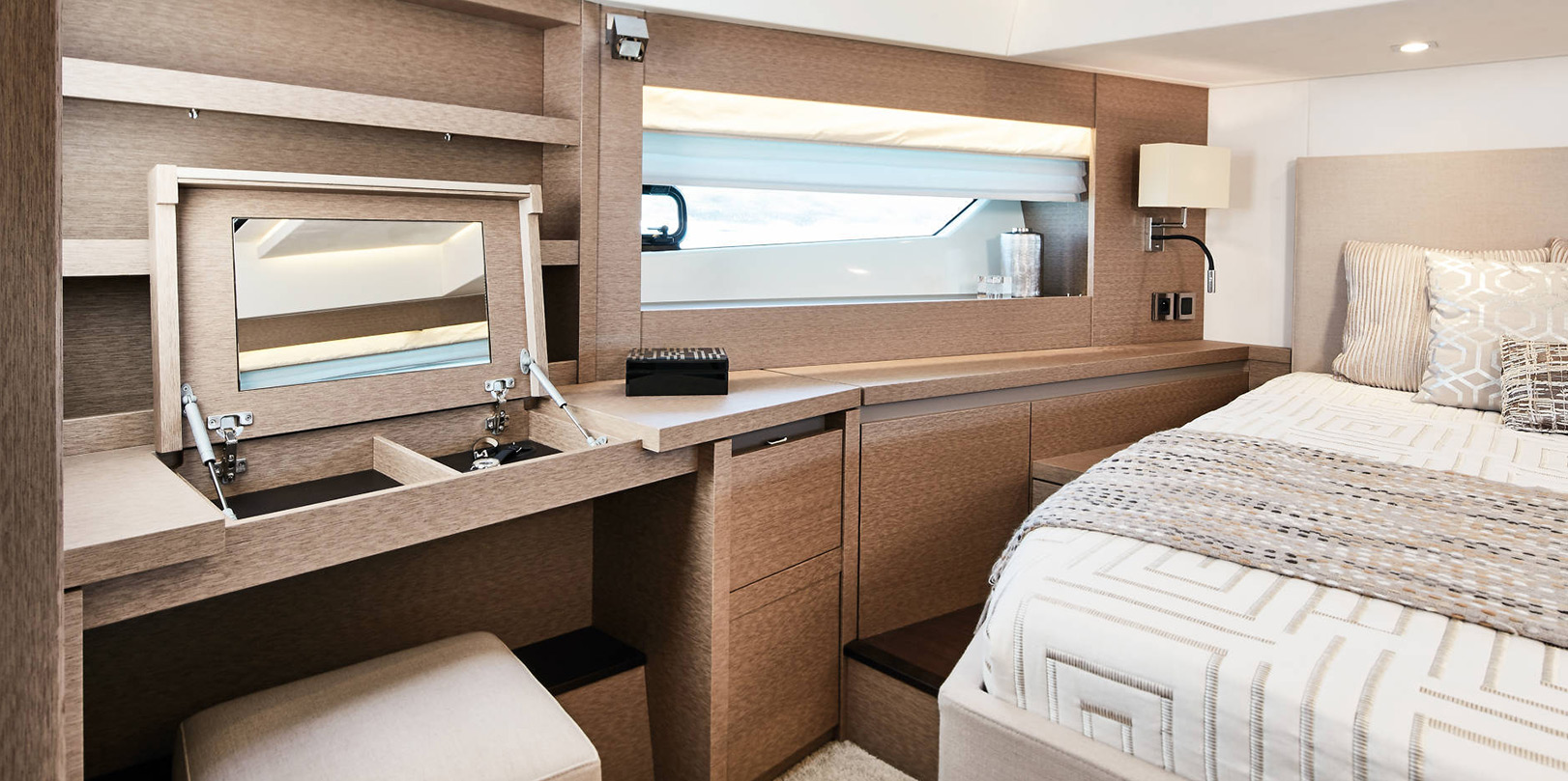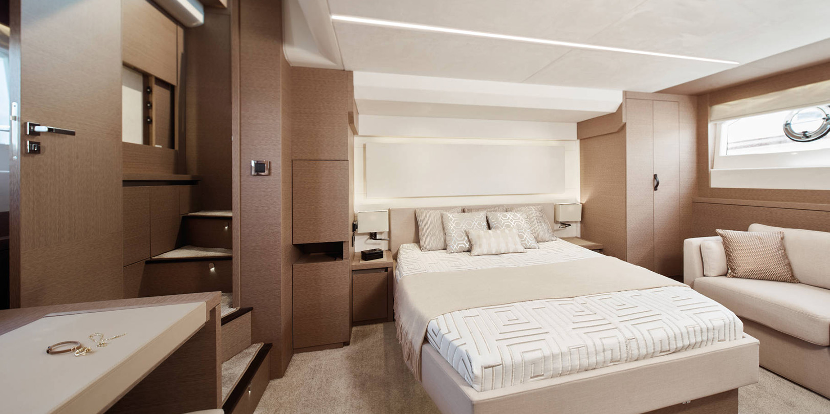 The PRESTIGE 630 SportYacht inherits the finest attributes of the PRESTIGE Yachts, with a refined, luxurious interior and impeccable finish. A chic, Zen spirit reigns.
