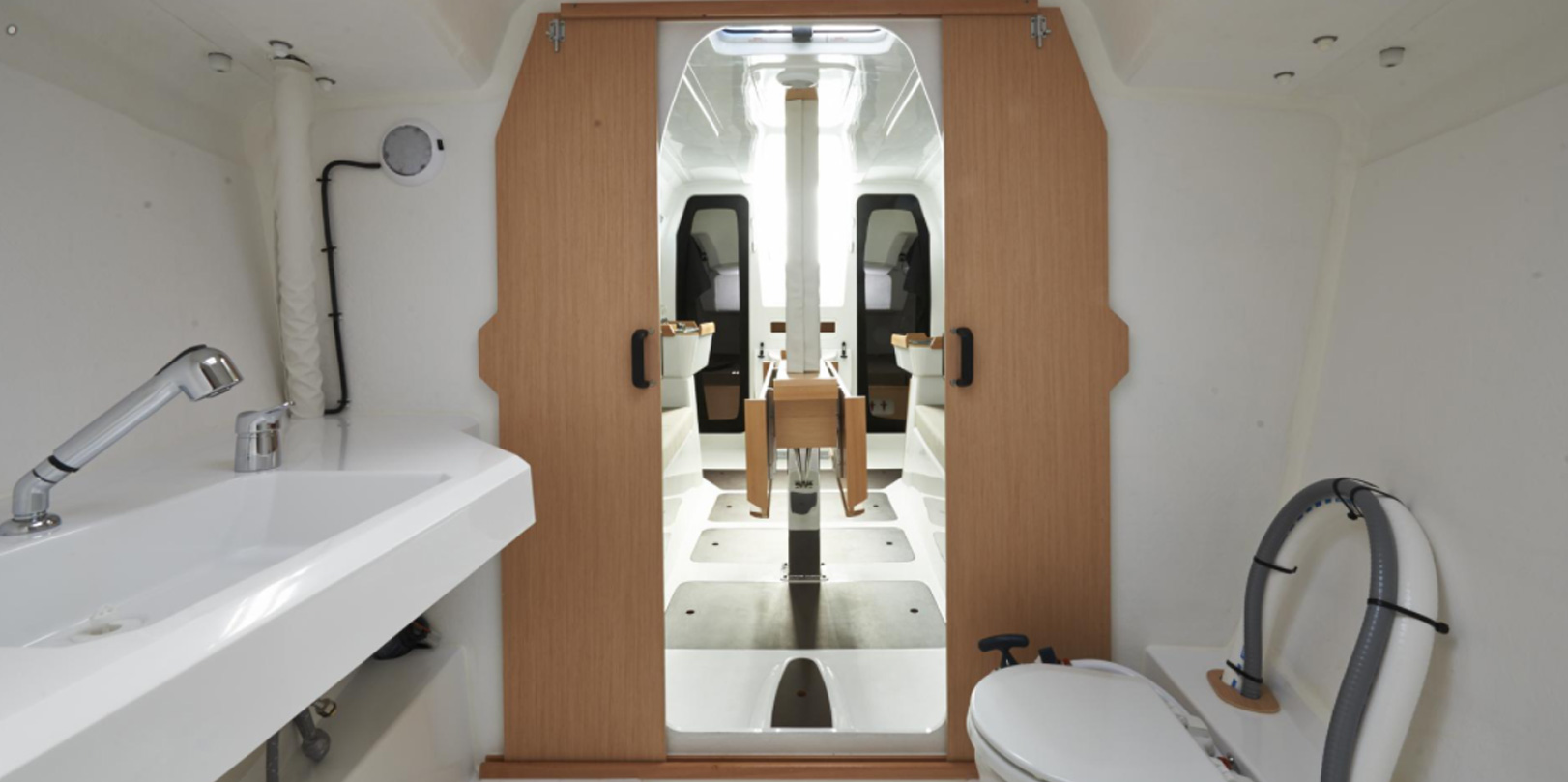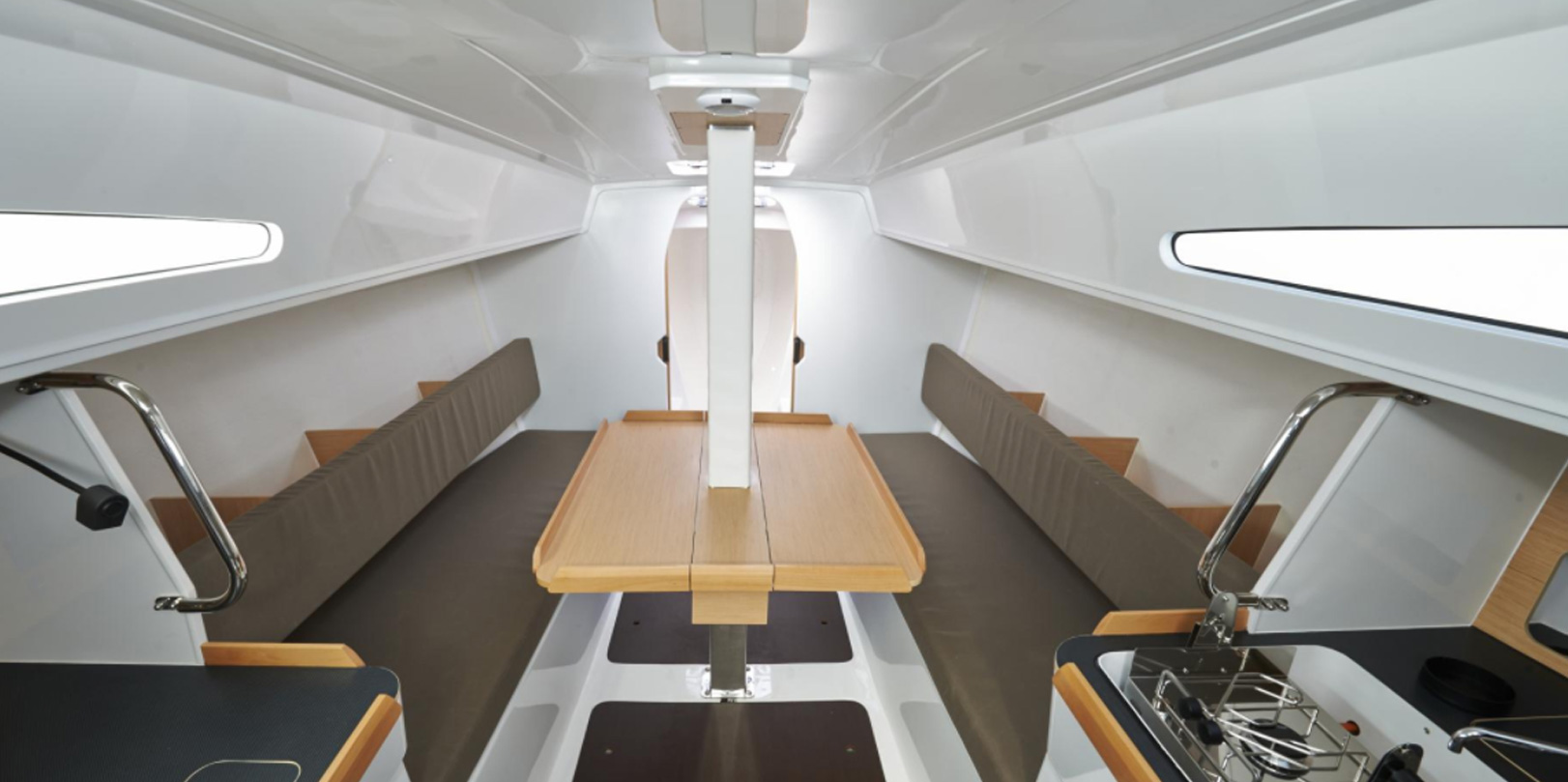 Available with twin, composite tillers or wheel steering and choices in mainsheet management, the deck layout ensures easy handling through well-thought-out ergonomics and optimized sailing functions.