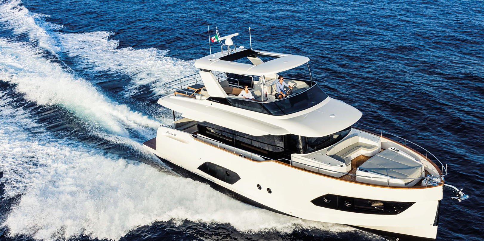 Solidity and harmony, strength and grandeur: all at your fingertips. Welcome aboard the Absolute Navetta 58. This voluminous boat is easily maneuvered in complete autonomy, with cutting-edge technological equipment always at hand, and with reliability of solutions designed entirely within the walls of our shipyard.
