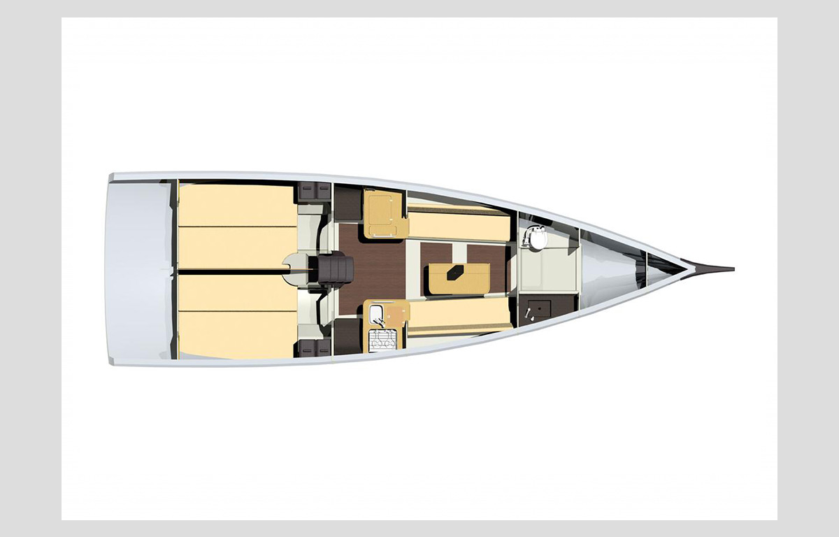 Available with twin, composite tillers or wheel steering and choices in mainsheet management, the deck layout ensures easy handling through well-thought-out ergonomics and optimized sailing functions.
